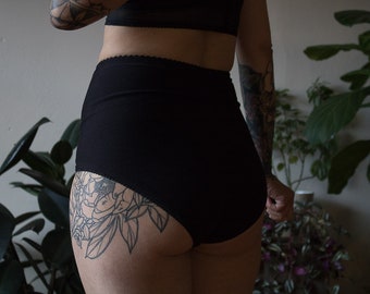 Black Organic Cotton High Waist Panties