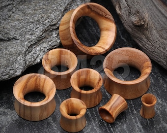 A Pair of Olive Wood Organic Double Flared Tunnel Plug
