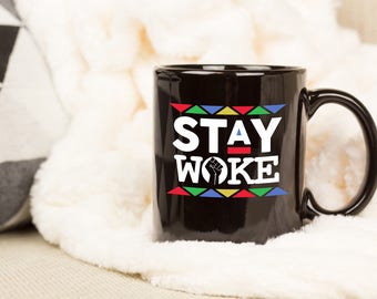 Stay Woke Against Inequality! Black Pride, Black Coffee Mug, Black is Beautiful, Melanated, Dark Skin, Black Queen, African Heritage