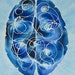 Mini Blue Mitosis 2 is just like one of those illustrations in your biology textbook – except that this one doubles as an original abstract painting. Starts with a single cell on the top left and ends up with 2 daughter cells on the bottom right. All in various shades of blue and white.