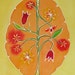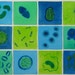 This painting was made using a wet-in-wet technique. After I draw a grid on the paper, I paint an individual square, wait a few seconds, and then add a second color of wet paint. The paint “bleeds” naturally, creating either a “cell” with awesome natural fractal patterns or a big old blob. If the former occurs, I wait a few more seconds and add another color – the nucleus. Then I do this a few more times.