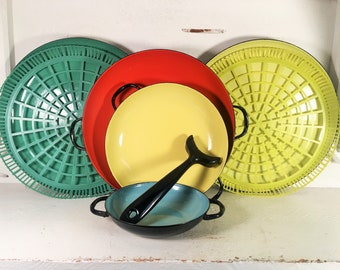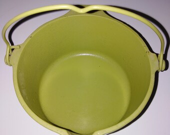 Vintage Outset Cast Iron Porcelain Enamel Dutch Oven Bean Pot