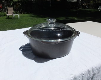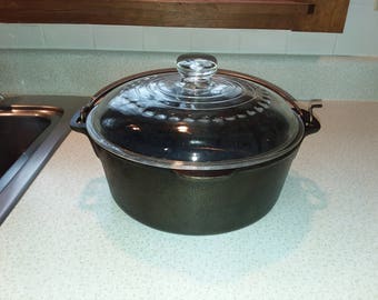 Vintage GRISWOLD Wagner Ware 5 Quart CAST IRON Dutch Oven with handle & glass lid - No Chips!