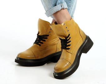 Combat boots, Blue combat boots, Winter leather boots, Comfortable ladies leather boots, Genuine leather women's boots, Blue women's shoes