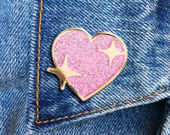 Sparkle Heart Pin, Hard Enamel Pin, Jewelry, Flair, Emoji, Gift (PIN103)