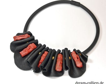 Leather-Coral-Necklace unique fro dream-colliers