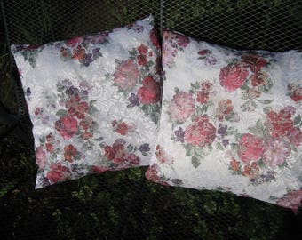 Delicate lace fabric pillow cover printed with roses