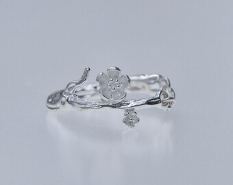 Handmade Chinese Ring,Fine Silver,Naturalism Design, Plum Flower for Good luck, Traditional Filigree, Miao Minority Culture
