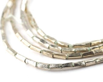 130 Silver Rectangular Tube Ethiopian Beads: Tiny Ethiopian Beads African Silver Beads Ethnic Silver Beads Rustic Silver Beads