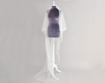 Crisp silk two tier delicate lace wedding veil, Crisp silk wedding veil