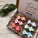 Depending on the order size either gift boxes, organza bags or gift wrap will be used, tied with an organza ribbon to finish