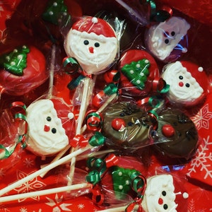 Hoilday Oreo cookie pops / Christmas party favor / chocolate covered Oreo / one dozen (12)