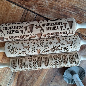 REINDEERS rolling pin, embossing rolling pin, engraved rolling pin by laserAlessandra Dec 11, 2021
