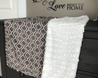 TRIBECA TWIRL - Designer-print Baby or Toddler Blanket, reverses to plush White Minky