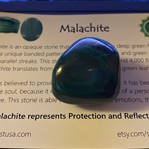 5 out of 5 starsThis has amazing energy and I'm really happy I have added malachite to my crystal collection. Shipped quickly, pretty good size and it is a really beautiful tumbled stone!