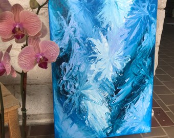 Botanical Abstract Painting - Original Floral Blue Green Yellow Wall Art