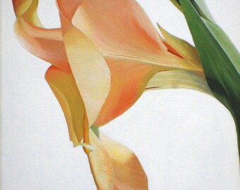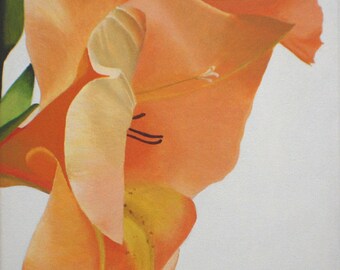 Orange Flower Painting - Salmon Gladiolus Macro Modern Botanical Acrylic Still Life Painting