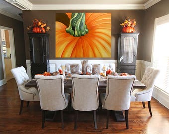 Pumpkin Painting - Orange Gourd Macro Botanical Acrylic Painting Farmhouse Kitchen Wall Decor