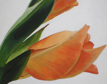 Flower Painting - Orange Gladiolus Original Wall Art Floral Decorative Painting Series