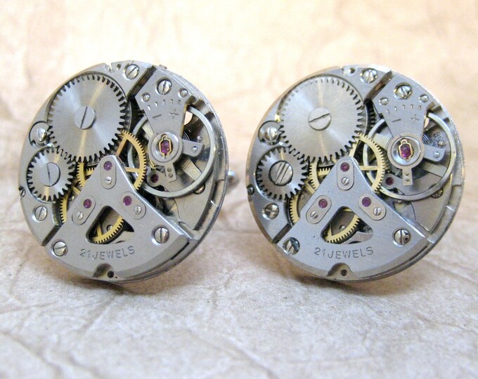 Steampunk Cufflinks - Vintage Repurposed 21 Jewel Watch Movement Cufflinks - Neo Victorian - Designed by A Second Time