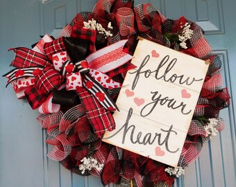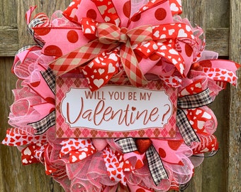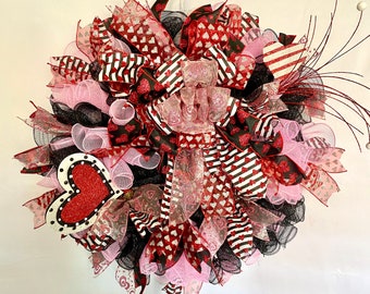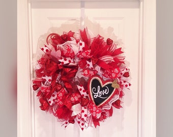 Valentine's Day Wreath, Front door Valentine's wreath, Holiday Wreath, Winter Wreath, Valentine's day decor, Deco Mesh Valentine's day wreat