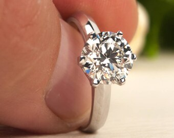 2.30 CT Round Brilliant Cut Diamond Engagement Ring GIA Certified 18k White Gold