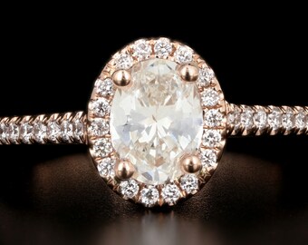 Modern 14K Rose Gold .80CT Oval Cut Diamond Engagement Ring GIA Certified