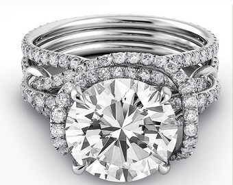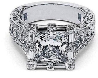 Handcrafted 5.50 CT Radiant cut Diamond Engagement Ring 18K WG GIA certified