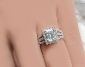 Diamond Engagement Ring 3.00 CT GIA Certified Emerald Cut 18k White Gold
