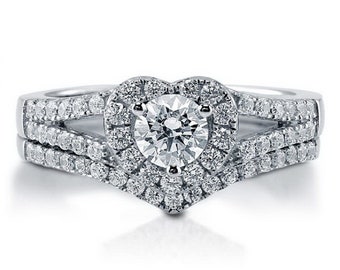 GIA Certified Diamond Bridal Ring Set 2.25 CT Heart Shape 18k Gold