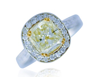 2.50 CT Radiant and Round Diamond Engagement Ring GIA certified 18K