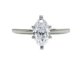 14k White Gold GIA Certified Marquise Diamond Engagement Ring