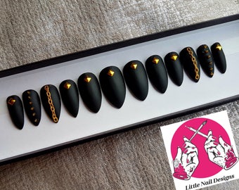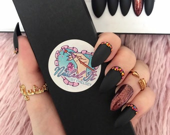 NAILED IT! Hand Painted False Nails - Studded Metallic Black Matte