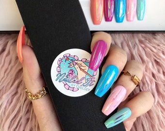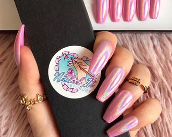 NAILED IT! Hand Painted False Nails - Unicorn Pink Holographic Chrome