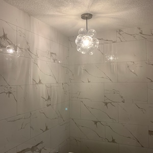 I had my tall waterfall bubble chandelier installed today and couldn't be happier. It's perfect for the master bath, and the electrician who installed it commented that it looked like someone took some bubbles from a bubble bath and put them up on the ceiling. Just what I had pictured 😊. Ashlie was a dream to work with and her suggestions were spot on. Not only that, but I priced similar bubble chandeliers at 4 times her prices!! Beautiful lights at a bargain price - how can you go wrong?!? Thanks, Ashlie and company!!!