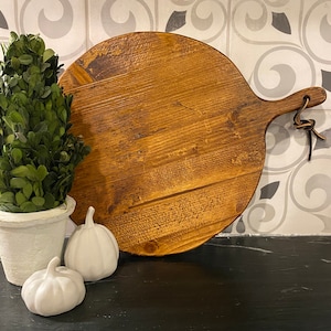 Large wooden Circular Round European bread board, REPURPOSED/RECLAIMED VINTAGE WOOD, Winery charcuterie board, pizza board, Bread Board collection, Cheese Board, bread board