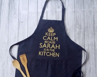 Kitchen Gifts for Her, Personalized Keep Calm Apron, Hostess Gift Ideas, Personalized Apron for Women, Baking Gift, Cooking Gift,