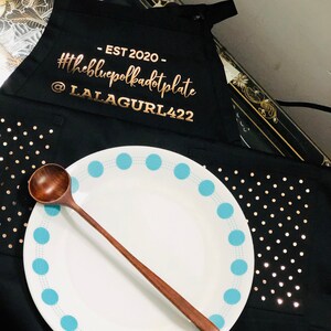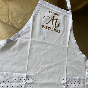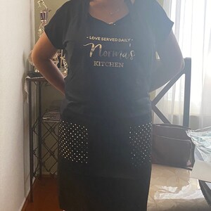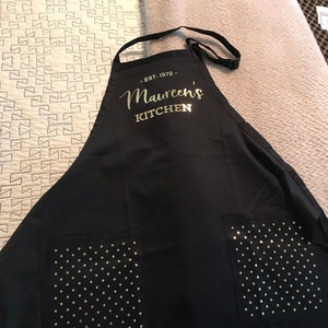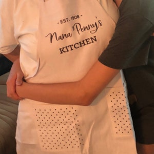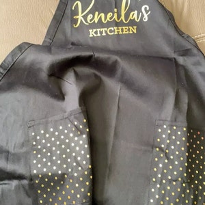Listing is for 1 Personalized Apron. Choose to upgrade and have polka dots printed on the pockets.