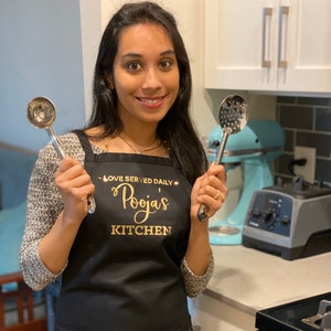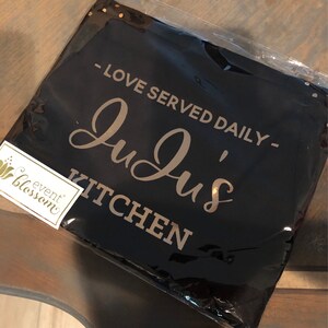 Personalized Aprons for Women make great kitchen gifts for the Hostess, your favorites baker or any lady who likes to cook! Aprons feature custom text printed in either black or metallic text - choose your own words and or a hashtag too!