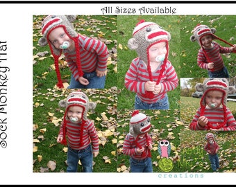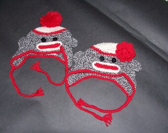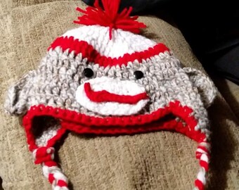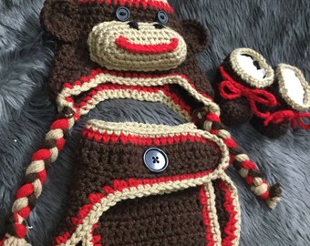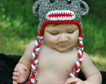 crochet sock monkey hat for girls and boys photo prop