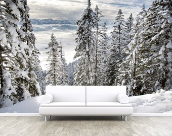 Winter forest in Alps, Self adhesive, Peel and Stick, 3D photo, realistic mural, wallpaper, Wall Mural, Removable Wall Wallpaper, Snow, W#73