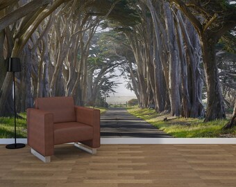 Tunnel of the trees, Self adhesive, Peel and Stick, 3D photo, realistic mural, wallpaper, Wall Mural, Removable Wall Wallpaper, Pathway, W#4