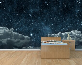 Sky with stars and clouds, Self adhesive, Peel and Stick, 3D photo, realistic mural, wallpaper, Wall Mural, Removable Wall Wallpaper, W#23