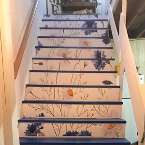 10 strips of Stair Riser - vintage field flowers | removable sticker peel & stick | Staircase decals | removable Star riser decals S#45