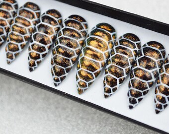 Snake skin designed LUXURY PRESS ON, false nails, press on nails, glue on, handpainted nails, stiletto nails