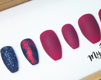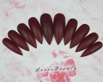 Matte burgundy LUXURY PRESS ON, false nails, press on nails, glue on, handpainted nails, stiletto nails