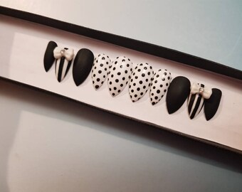 Black and white dots LUXURY PRESS ON, false nails, press on nails, glue on, handpainted nails, stiletto nails