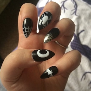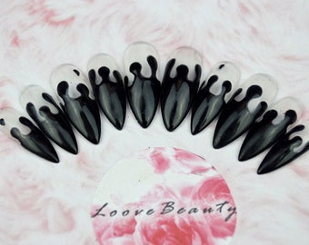 Black glossy drip LUXURY PRESS ON, false nails, press on nails, glue on, handpainted nails, stiletto nails