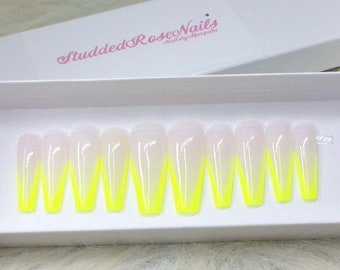 Pink and yellow matte ombre with leopard print LUXURY PRESS ON, false nails, press on nails, glue on, handpainted nails, stiletto nails