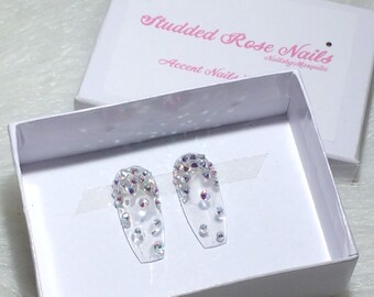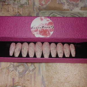Cinderella pink with rhinestones LUXURY PRESS ON, false nails, press on nails, glue on, handpainted nails, stiletto nails -